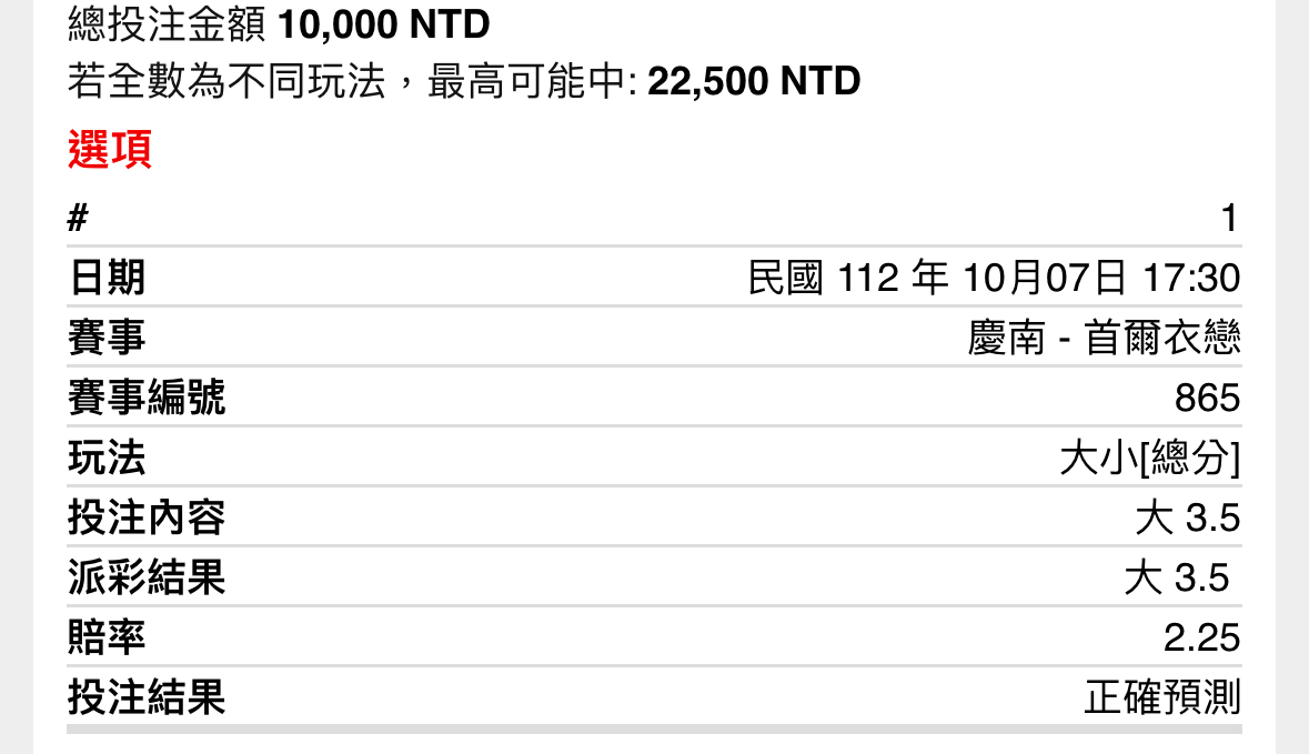 噓 ChrisTaylor: 大家都買大 我買2.5小 是不是送錢了Q 49.215.32.25 10/07 18:07