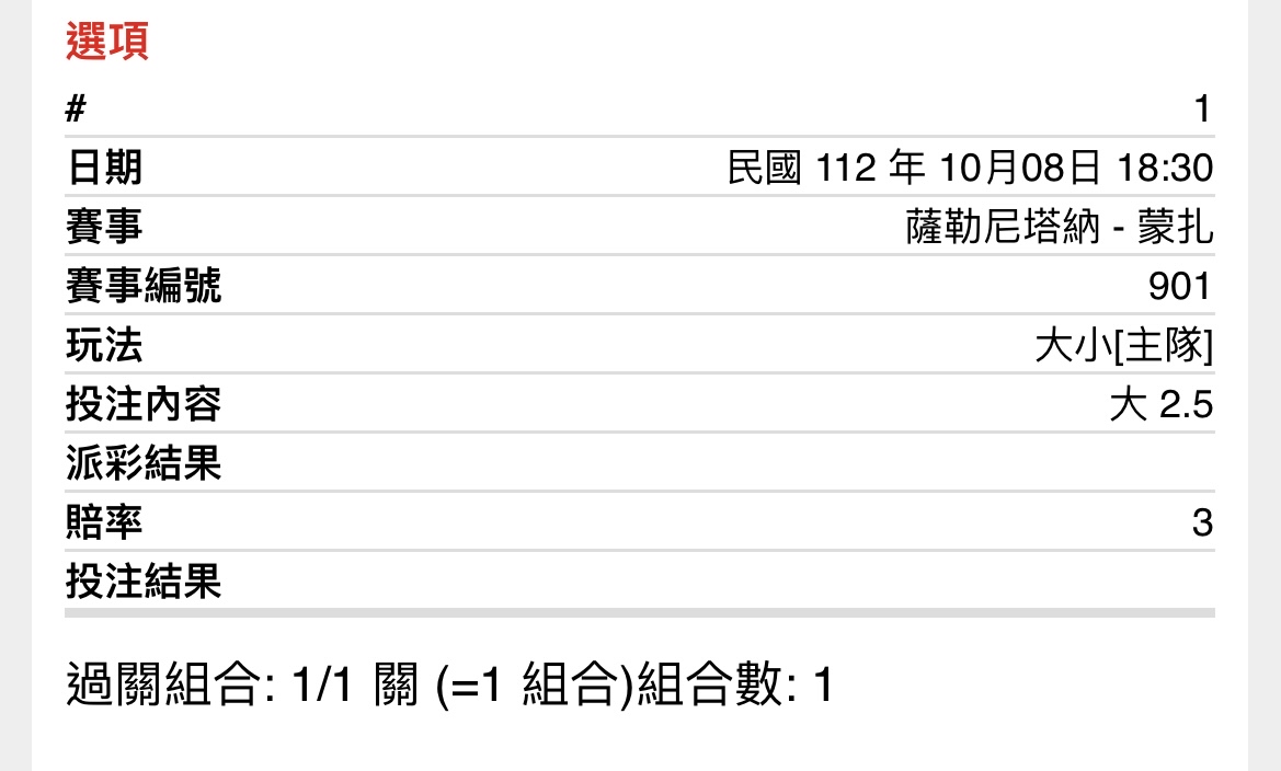 w2658741: 2.5小 2.85 1k進場 頂多蒙沙2:0 這能大 42.73.225.74 10/08 18:44