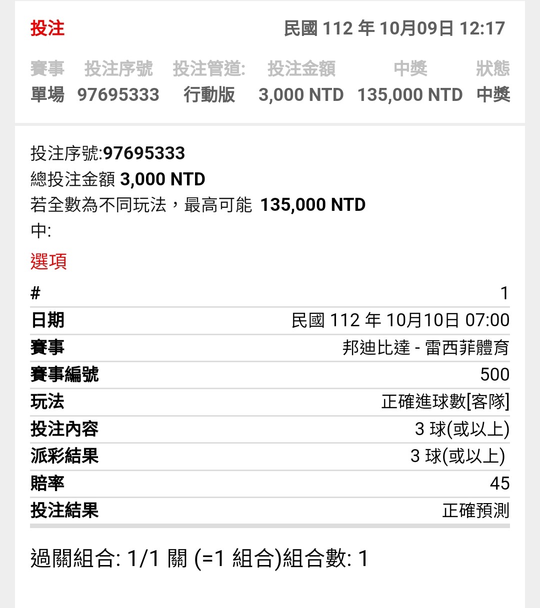 近期巴西天牌狂出 威剛樂透賠率突破天際 客隊單場3+ 開45倍 國際才15-17倍 推薦樂透客2 客3+ 9倍、45倍 45倍直接槌給威剛難看 -- ※ 發信站: 批踢踢實業坊(ptt.org.tw), 來自: 1.162.81.76 (臺灣) ※ 文章網址: https://ptt.org.tw/SportLottery/M.1696822218.A.063