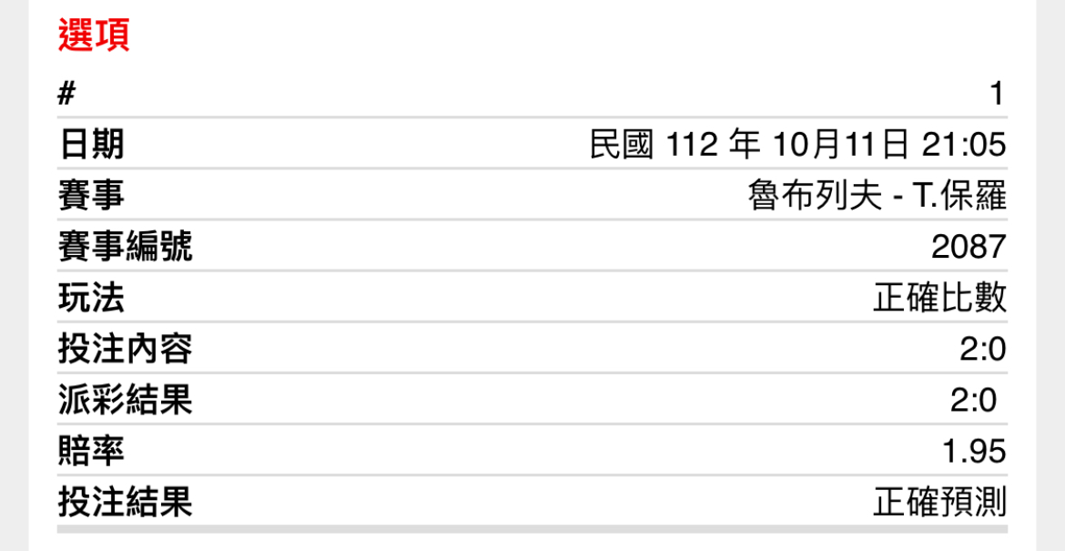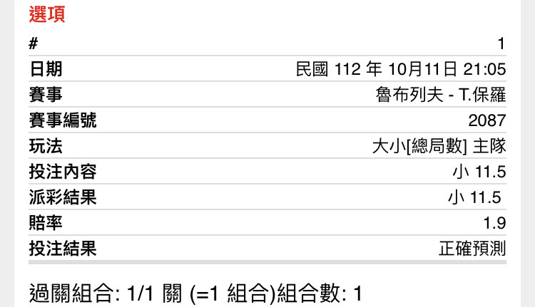 zhiting: 賽前下到1.95 2:0 61.65.69.207 10/11 22:55