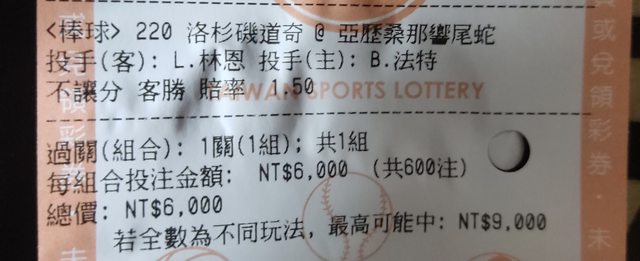 明天道奇蛇蛇 蛇蛇下盤倒打已經連續四場明天依舊開高賠2.05 搭配隔壁棚的金鳥被橫掃出局 感覺就像鋪著一條紅毯等你下蛇蛇 躲人這兩場只拿四分 連一場單大都開不了 加上征戰客場結果賠率只開1.5 彷彿就怕人家下一樣 那只好六千磅鐵拳給你孬剛貓下去 http://i.imgur.com/QAUV3R3.jpg