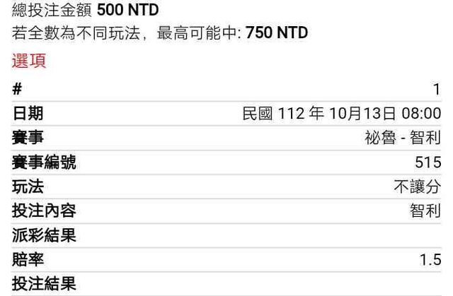 ※ 文章網址: https://ptt.org.tw/SportLottery/M.1697152813.A.0D3