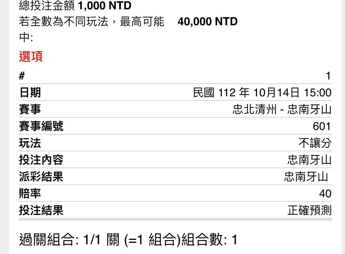 → hatsuta: 第一次玩單場全部下注都中獎 122.118.57.51 10/14 17:13