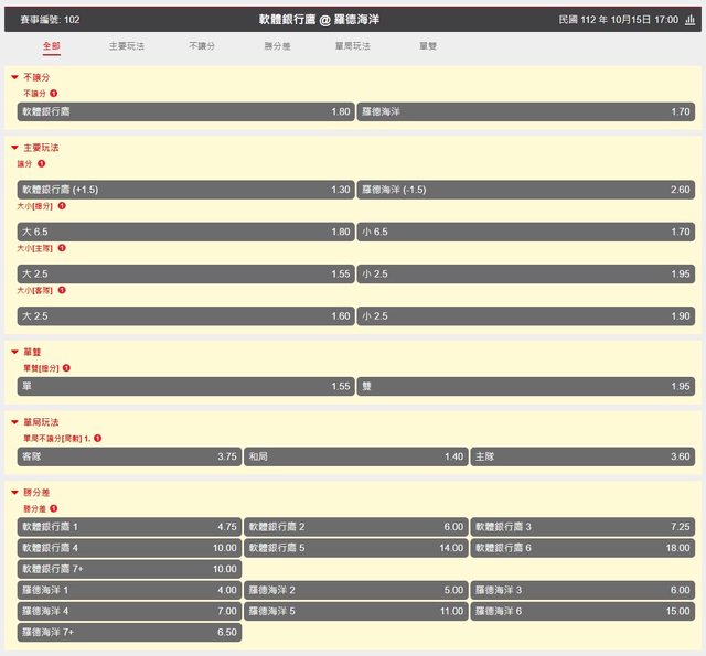 → ting7892: 星跟羅德讓分-1.5 27.53.177.14 10/15 10:09