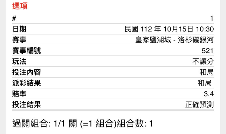 koiick: 下半在搞,還好有下一點保本的2:2正比.. 58.115.112.111 10/15 12:36