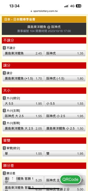 yozheng: 羅德小1.5 阪神-1.5 114.35.187.1 10/18 13:56