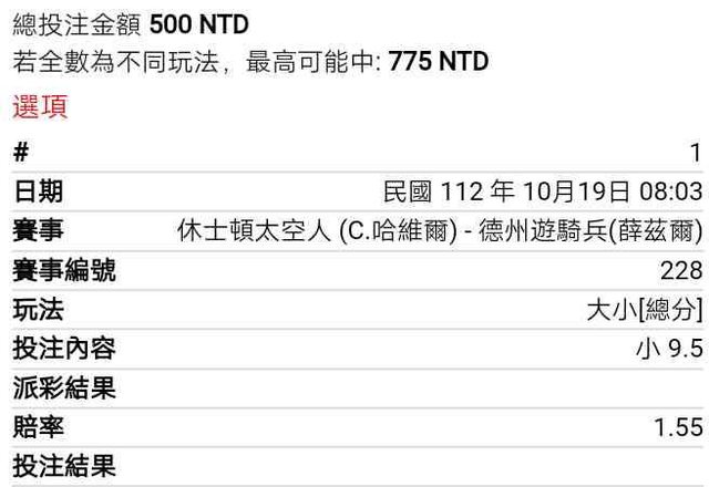 ※ 文章網址: https://ptt.org.tw/SportLottery/M.1697669668.A.CDA