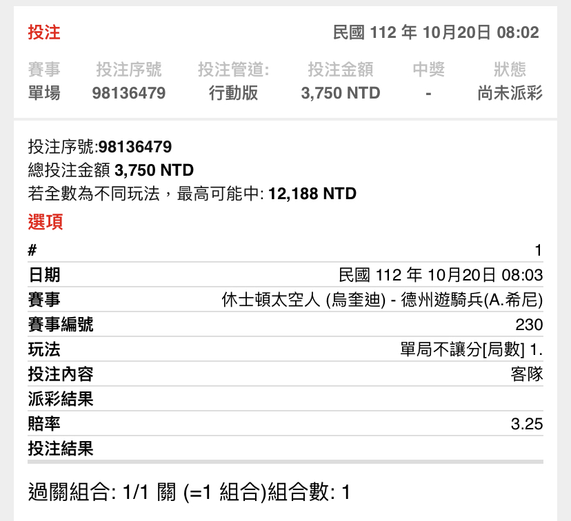 saviour911: 賽前9.5大 1.7收 42.78.194.11 10/20 09:42
