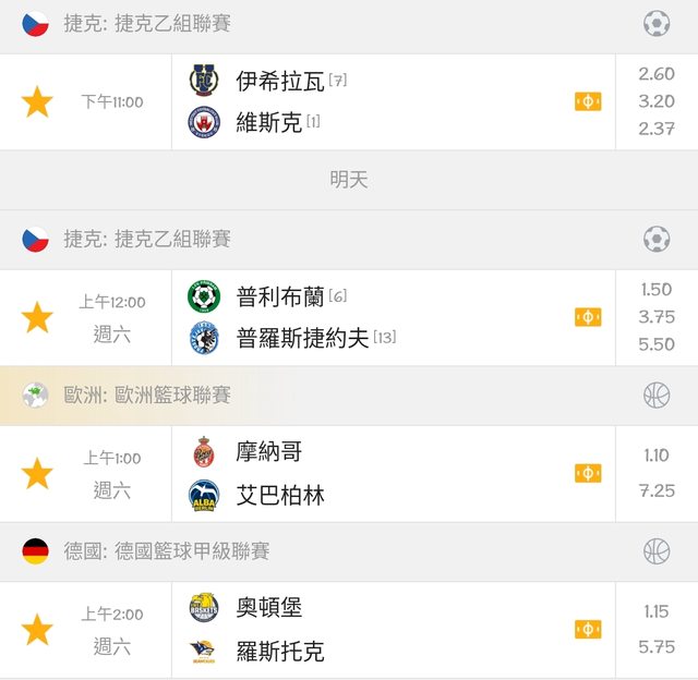 23:00捷客乙 客pk 2.4高賠趁孬剛還沒改 24:00捷克乙 2.5大 1.6 1:00歐籃 163.5大 2:00德甲主-8.5 4*1轟一下 有轟 抽五杯星巴克摟 合者一起衝 冥燈發爐中 -- ※ 發信站: 批踢踢實業坊(ptt.org.tw), 來自: 101.12.103.18 (臺灣) ※ 文章網址: https://ptt.org.tw/SportLottery/M.1697813334.A.DCC