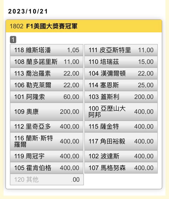 [F1]「天九牌」2023美國大獎賽