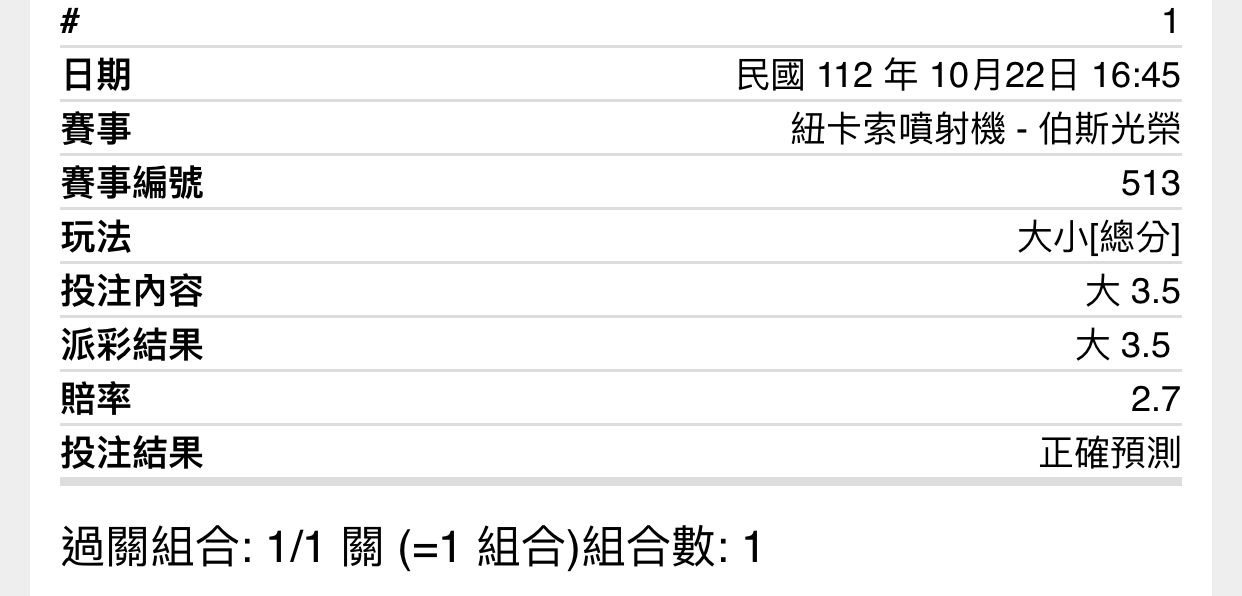 → qazxsw: 上半2.5小,全場3.5大都是過關,全勝澳甲 27.52.32.13 10/22 18:40