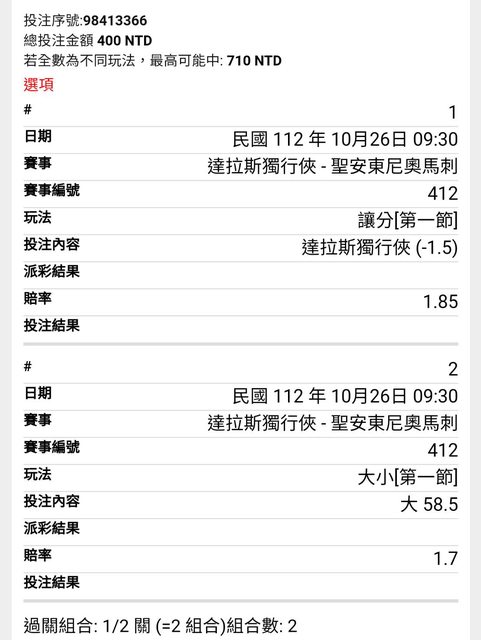 ※ 文章網址: https://ptt.org.tw/SportLottery/M.1698209994.A.F98