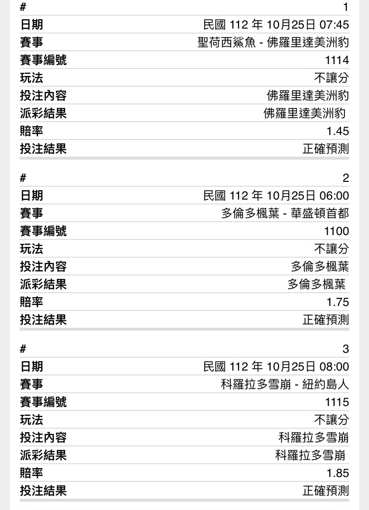 ※ 文章網址: https://ptt.org.tw/SportLottery/M.1698238524.A.57B