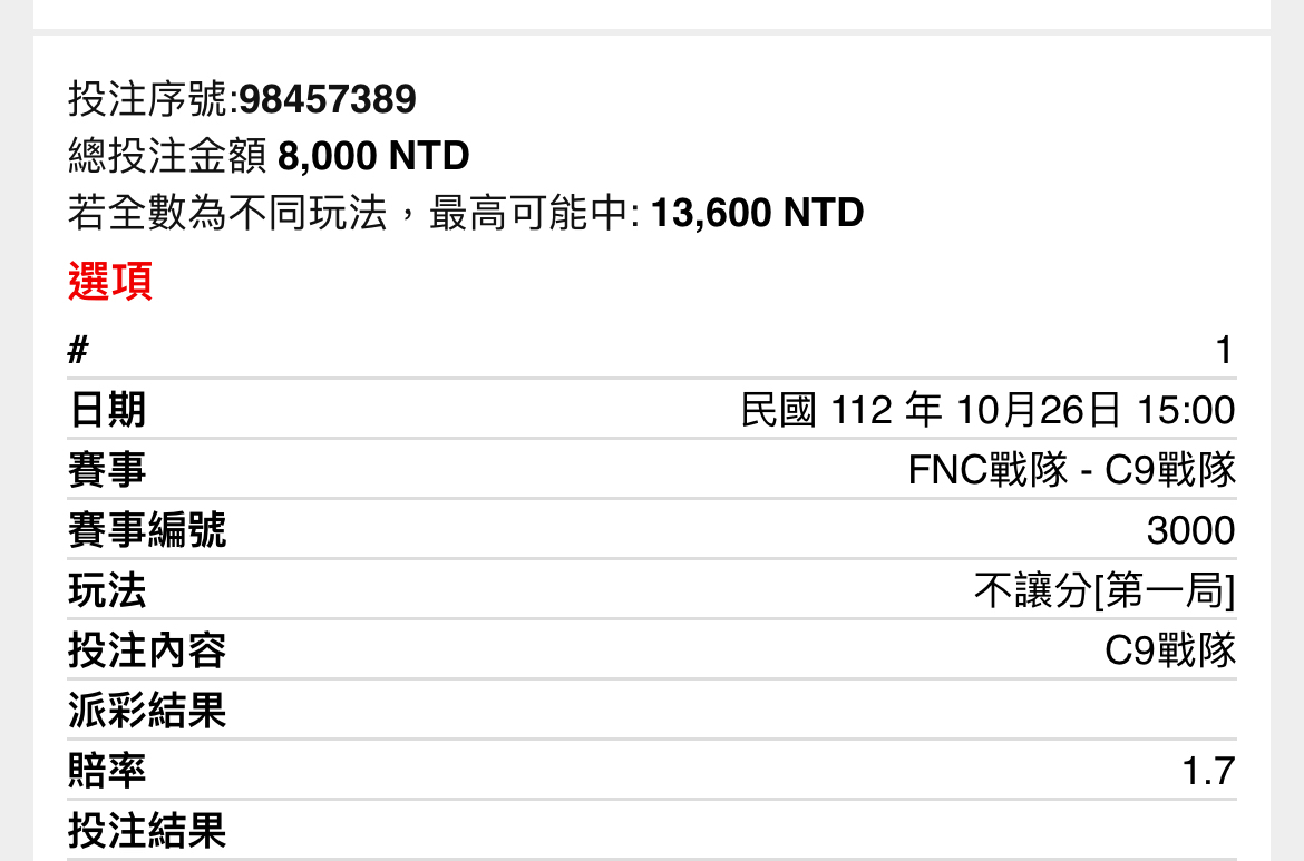 推 JohnDDD: C9PK×1.60、0:2×2.85 42.77.30.107 10/26 15:01