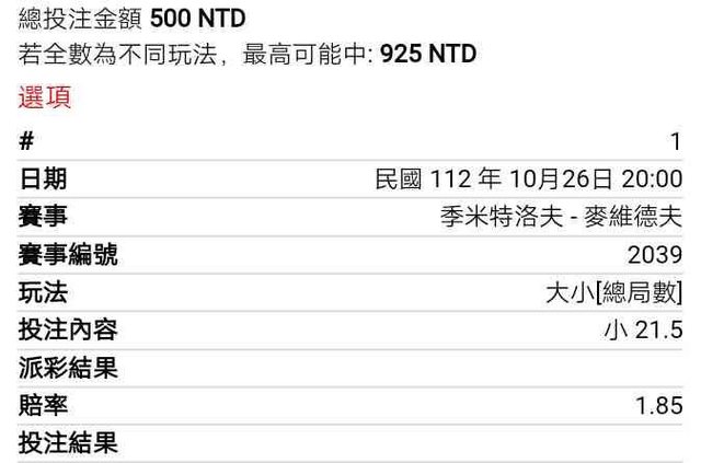 ※ 文章網址: https://ptt.org.tw/SportLottery/M.1698316463.A.23D