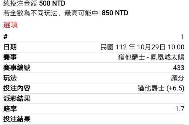 ※ 文章網址: https://ptt.org.tw/SportLottery/M.1698542624.A.542
