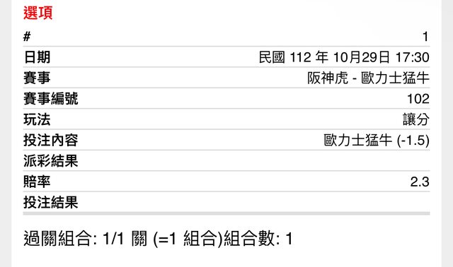 ※ 文章網址: https://ptt.org.tw/SportLottery/M.1698561849.A.9BF