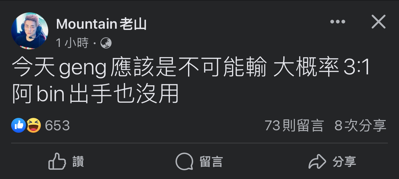 推 tsai18: GENG感覺會輸耶 118.167.148.46 11/03 16:31