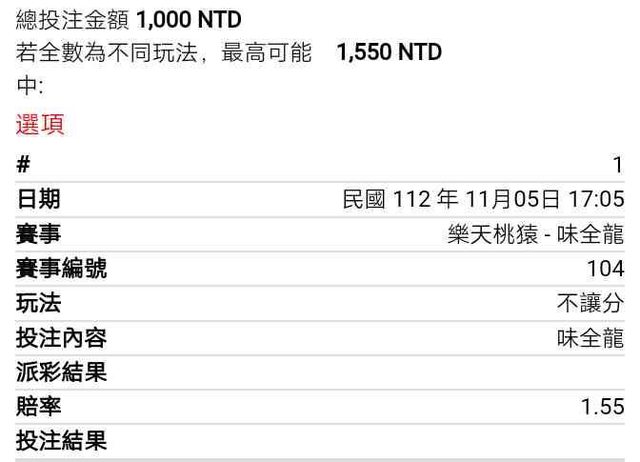 ※ 文章網址: https://ptt.org.tw/SportLottery/M.1699169636.A.ADA
