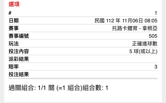 ※ 文章網址: https://ptt.org.tw/SportLottery/M.1699199095.A.FA4