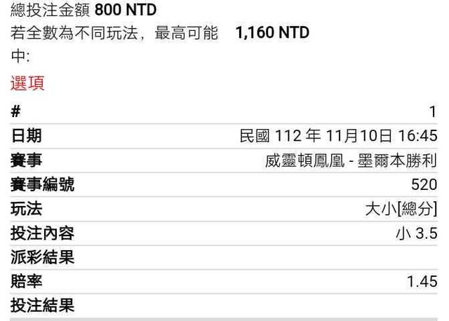 ※ 文章網址: https://ptt.org.tw/SportLottery/M.1699599542.A.DD6