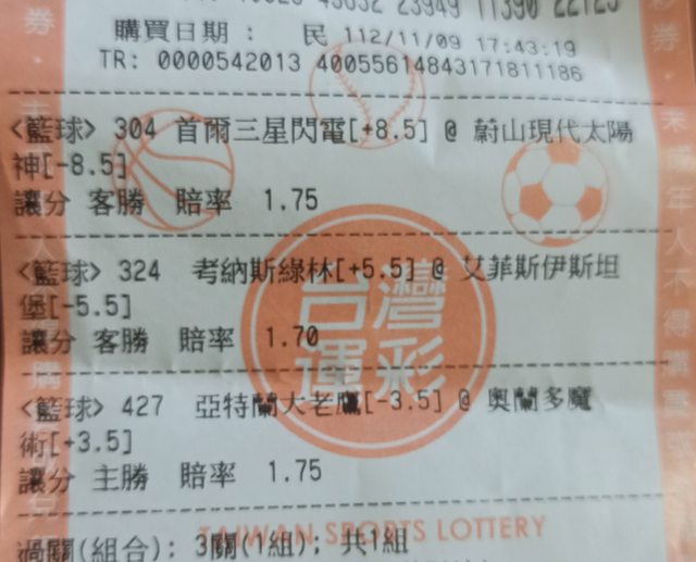 ※ 文章網址: https://ptt.org.tw/SportLottery/M.1699604990.A.DCC