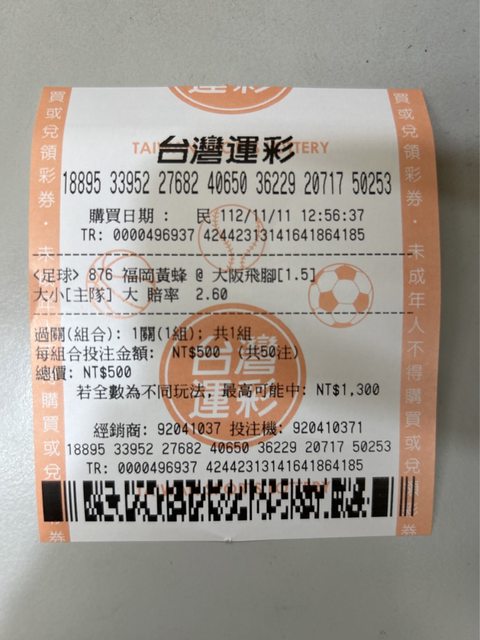 ※ 文章網址: https://ptt.org.tw/SportLottery/M.1699679659.A.5F2