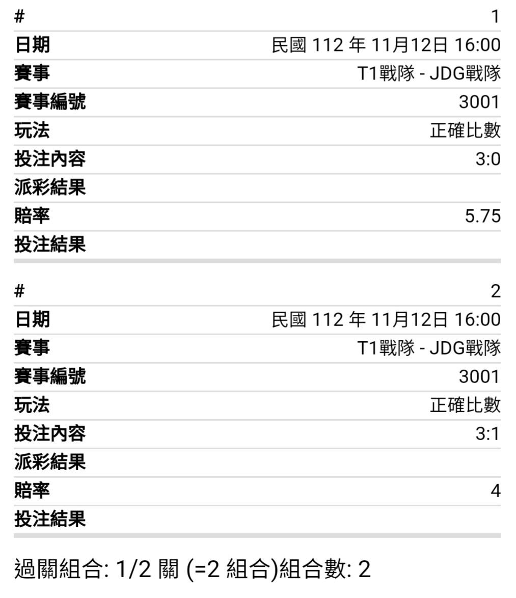 ※ 文章網址: https://ptt.org.tw/SportLottery/M.1699773662.A.5C2