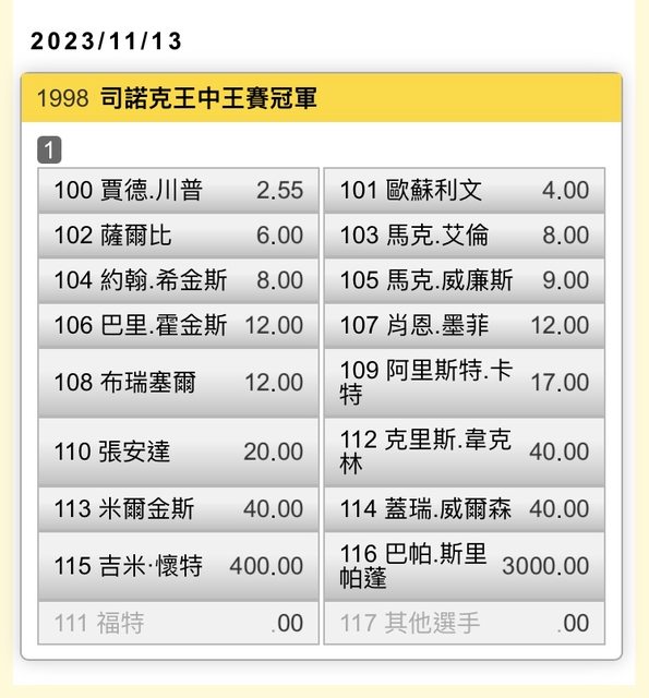 運彩司諾克史上首次決出百倍賠率 https://i.imgur.com/CoeDizD.jpg