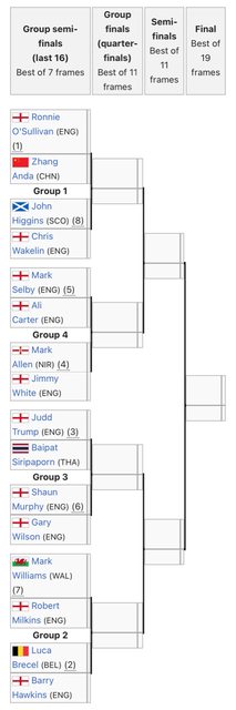 上半區較強 下半區較弱 有時宿命相遇就是這麼有趣 張安達第一輪就要再遇火箭 特殊一提:做為星爺偶像曾經應邀參演《龍的傳人》反角「快槍手韋德」,司諾克傳說人 物Jimmy White亦有參戰 https://hk.on.cc/hk/bkn/cnt/lifestyle/20190110/bkn-20190110080021929-0110_0098 2_001 然而下半區頭牌則是本季最強總統川普 準神近況極佳連拿三站排名賽冠軍有多難? 這點連史上最多冠 火箭都沒達成過 成事在人 我命由天 下好離手觀看眾家頂尖高手拚搏即可 https://i.imgur.com/5OdUsFa.jpg