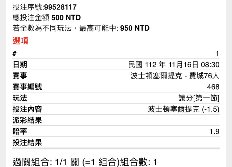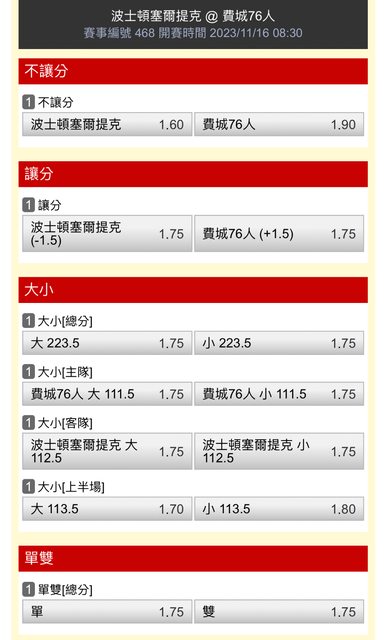 → instill8: 超賽76 昨晚主客好像盤都開114.5 219.71.100.207 11/16 08:57