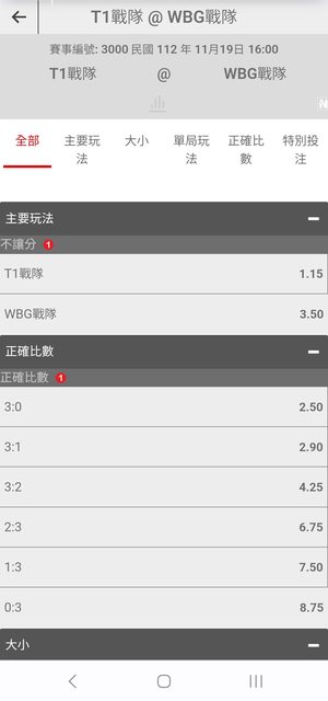 → FakerFan10Ys: WBG 3-2、WBG 3-1、WBG+1.542.79.114.145 11/19 15:40