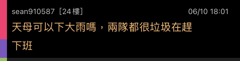 噓 sean910587: 天母可以下大雨嗎,兩隊都很垃圾在趕 42.73.168.29 06/10 18:01