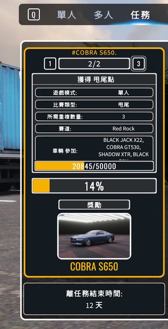不過steam社群討論裡,任務內容不一樣,同一台車但任務需求是XDS點數...