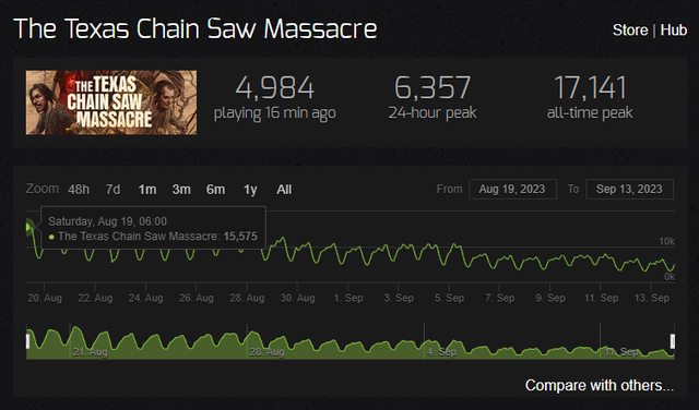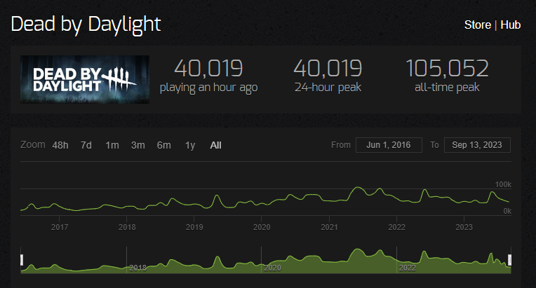 → s7503228: 欸不是 DBD雖然起起落落但是好歹常態四萬欸 哪有沒人玩 09/14 00:43
