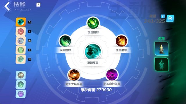 我選用了飛箭英靈兩個技能,並搭配了怒火狂飆、閃現、生命源泉等技能。