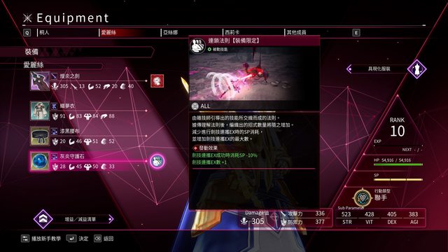 本作延續彼岸遊境的戰鬥設定 SP值固定300 普通劍技消費100 奧義200