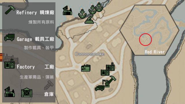 : : 有了基本素材 BMAT,就可以在工廠 Factory製造軍需品、彈藥,補給倉庫 Depot,