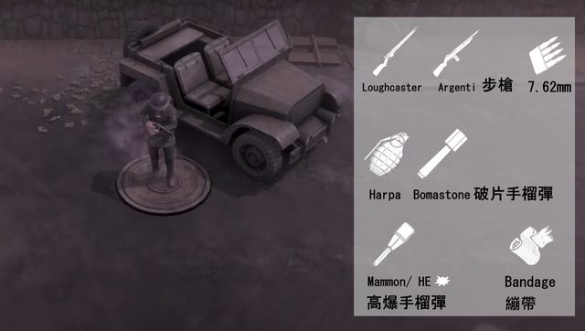 : : 不論是選擇前線或是後勤,進入戰場後,首先得從據點取得物資及裝備,