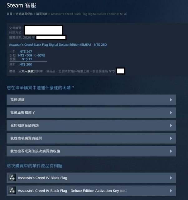 : 還附上了我在Steam的購買資訊以證明我是有付錢的