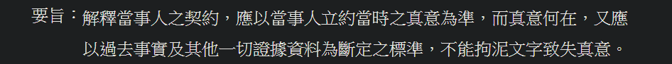 → tindy: 現在法條都清清楚楚寫了 合約不應拘泥於文字 11/08 08:38