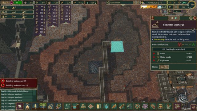 由於追加副作用的關係,本來乾旱只是停產停水,一波壞水會讓食物全部清場,食物的存量與地形導流就更需要策略考量