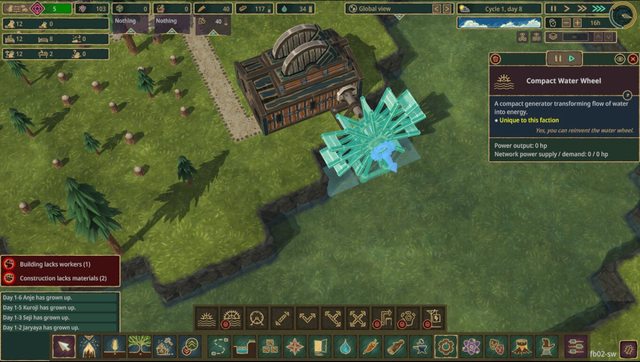 現在是電力、水生產量差異更多,但還是沒目標可以追求,算是比較可惜的地方,要特地設定兩個以上的城市中心讓河狸工作距離不用跑大老遠的…還是有點難度
