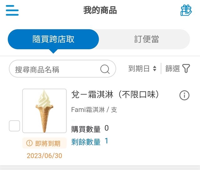 物品說明:不限口味,全家APP轉贈,今天6/30到期