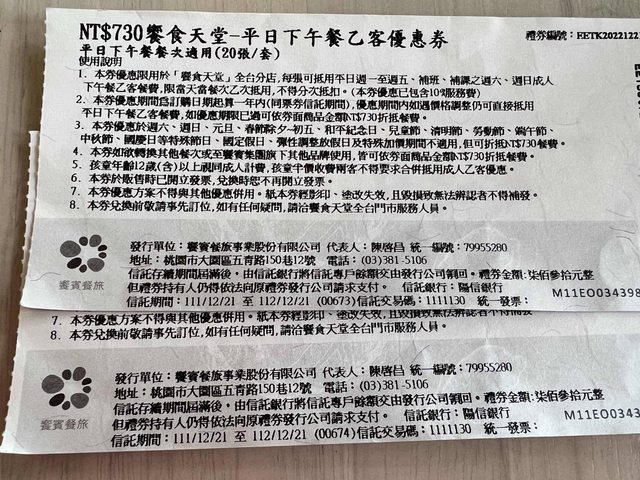 標題[交易] 饗食天堂平日下午茶餐卷2張