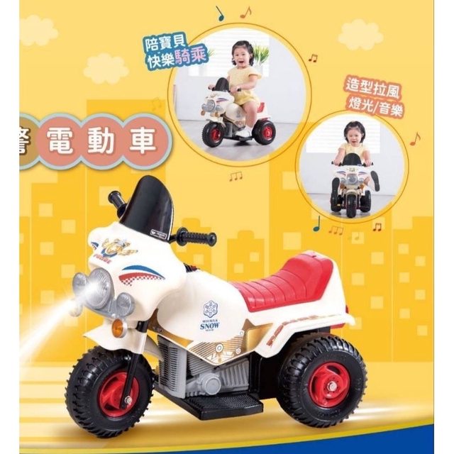 ● 仿警察摩托車設計的電動摩托車,讓小朋友騎起來很拉風