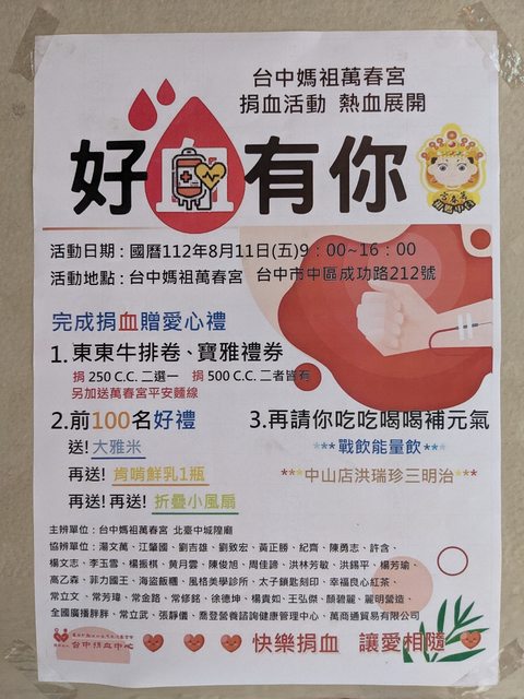 [資訊] 萬春宮8月捐血資訊