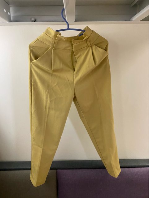 5、黃色打折西裝褲(尺寸約S) (扣子縫線有點掉了,可能要再縫一下)