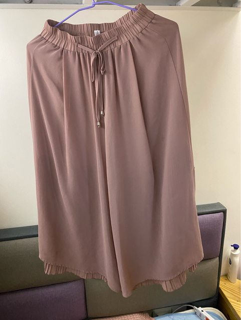 6、藕粉雪紡雙層寬褲