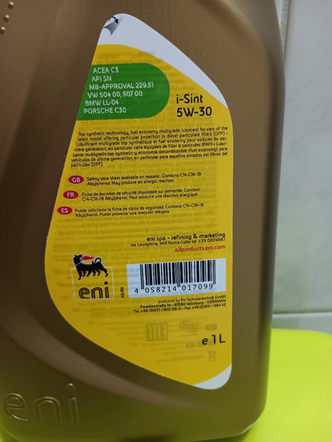 Eni i-sint 5w30 頂級合成油 汽柴油車可用德國製 認證如瓶身標示 1公升$200